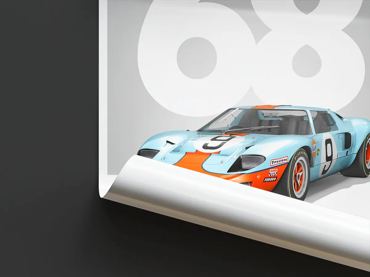 Une affiche pour retracer la victoire de John Wyer Automotive en 1968 avec leur célèbre Ford GT40 pilotée par Pedro Rodriguez et Lucien Bianchi.