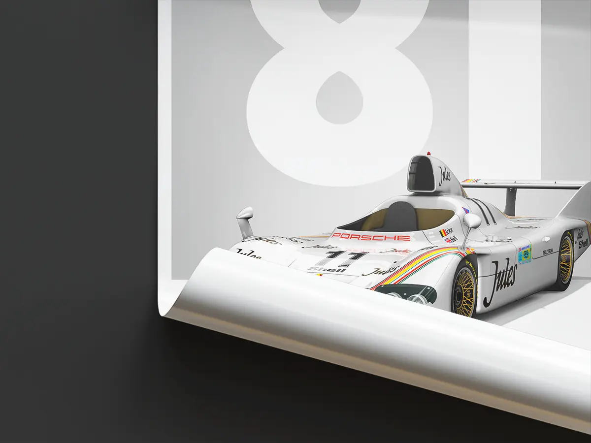 Une affiche pour retracer le triomphe de Porsche System en 1981 grâce à la Porsche 936 pilotée par Jacky Ickx et Derek Bell.