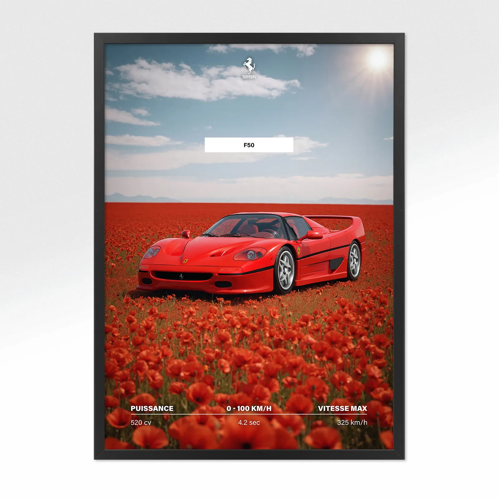 Ce poster Ferrari F50 fait partie de notre collection Hypercar, regroupant les véhicules les plus puissants au monde (Koenigsegg Jesko, Bugatti Divo, Pagani Zonda, …).
