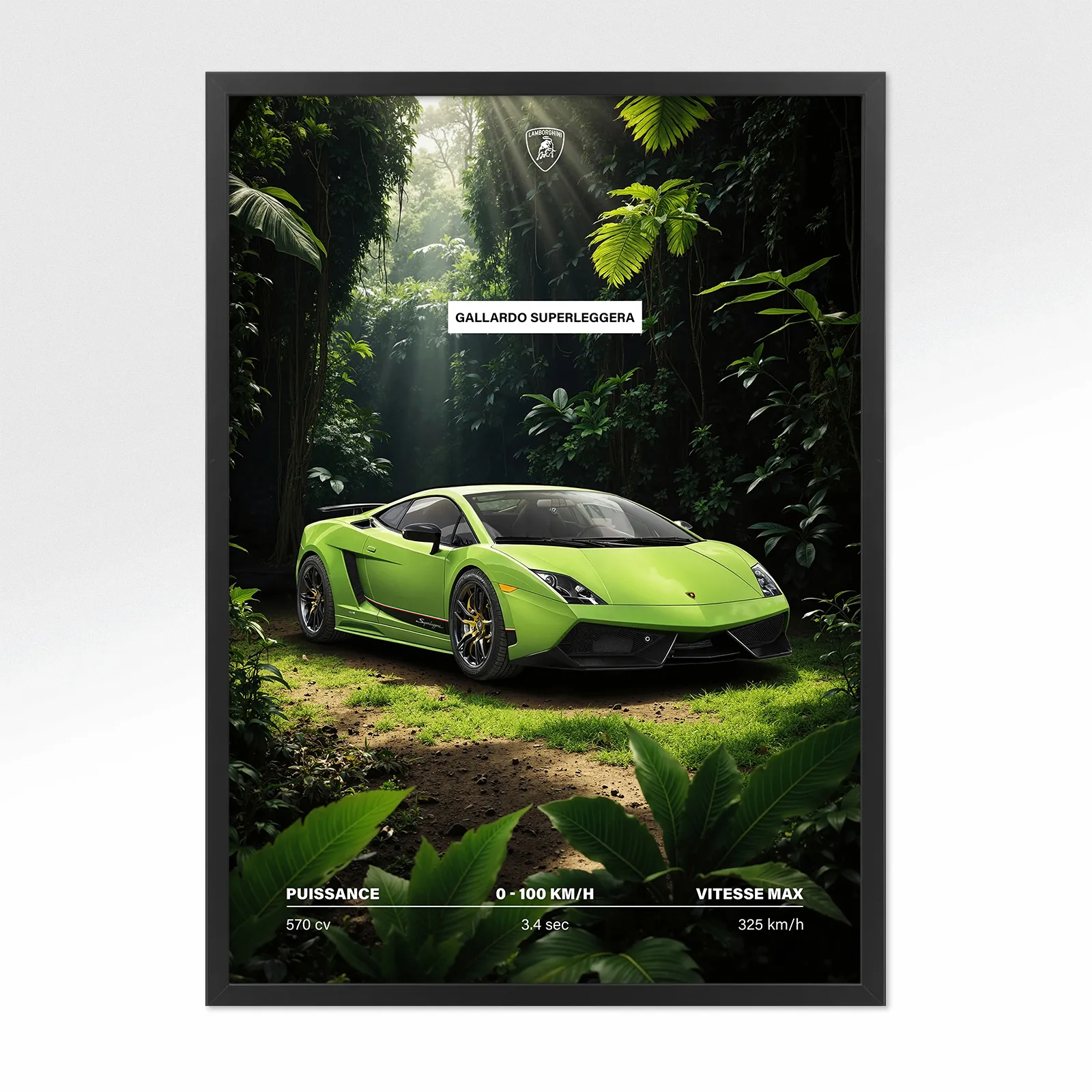 Ajoutez du caractère à vos murs avec ce poster Hypercar de la Lamborghini Gallardo Superleggera, un modèle léger et racé conçu pour des performances maximales.