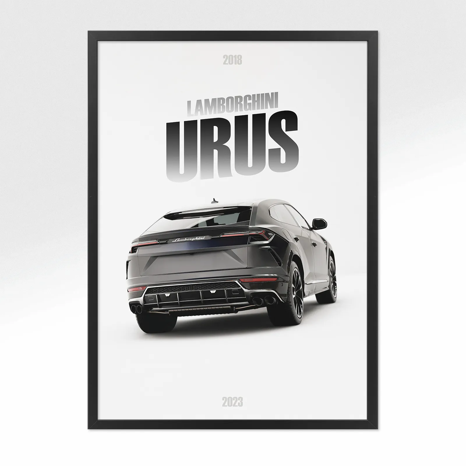 Un poster unique représentant l’arrière de la Lamborghini Urus commercialisée de 2018 à 2023.