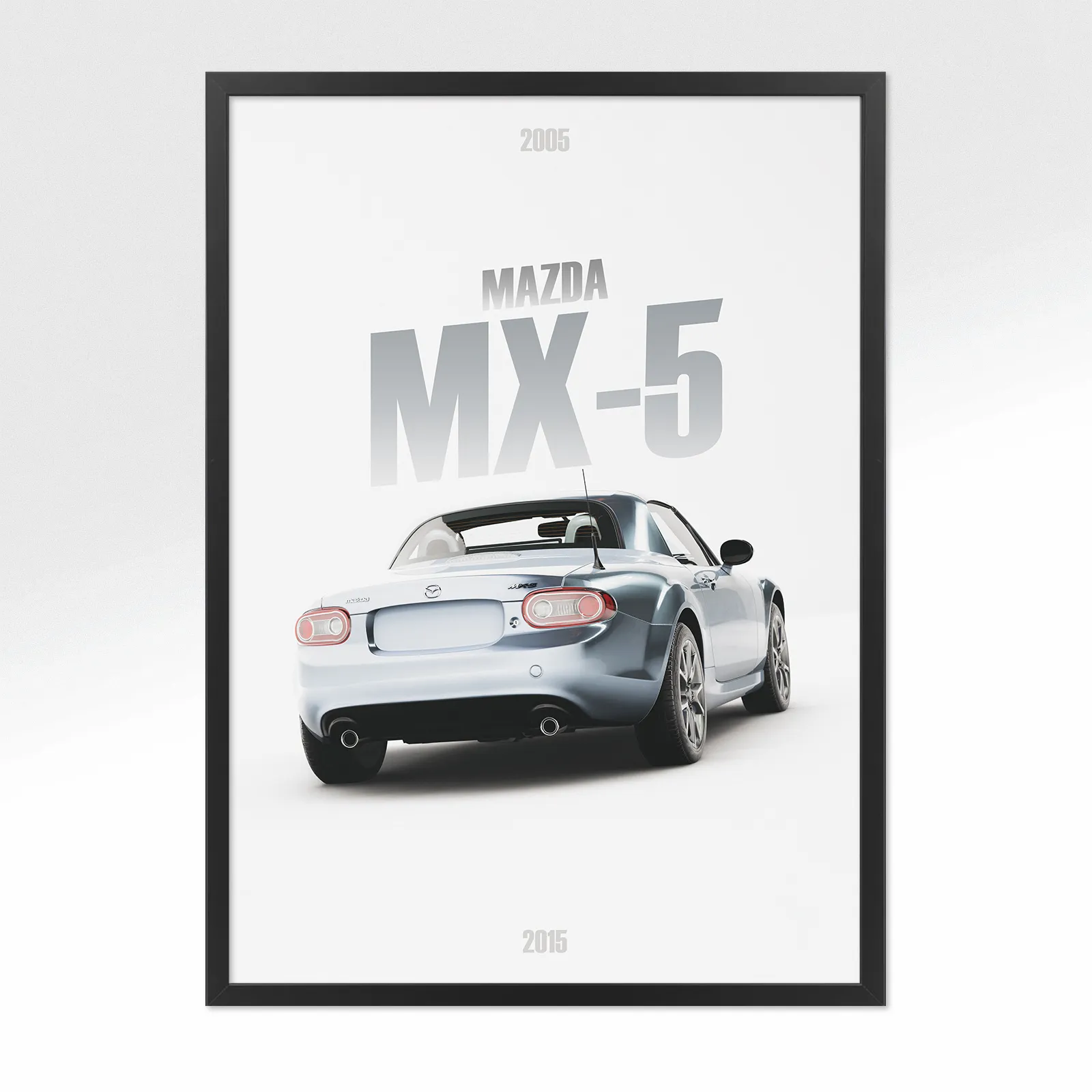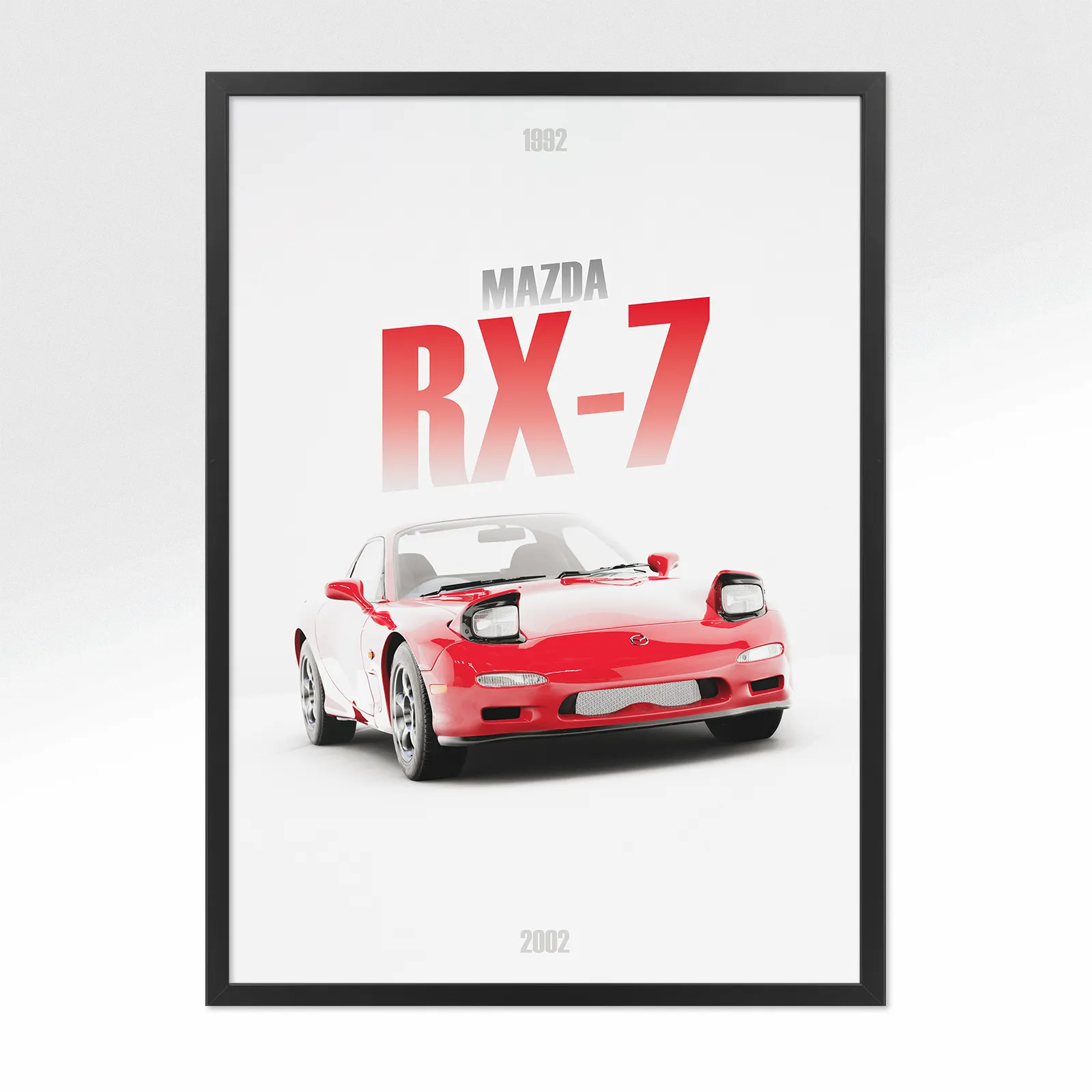 Un poster unique représentant l’avant de la Mazda RX-7 Spirit R Type A commercialisée en 2002.