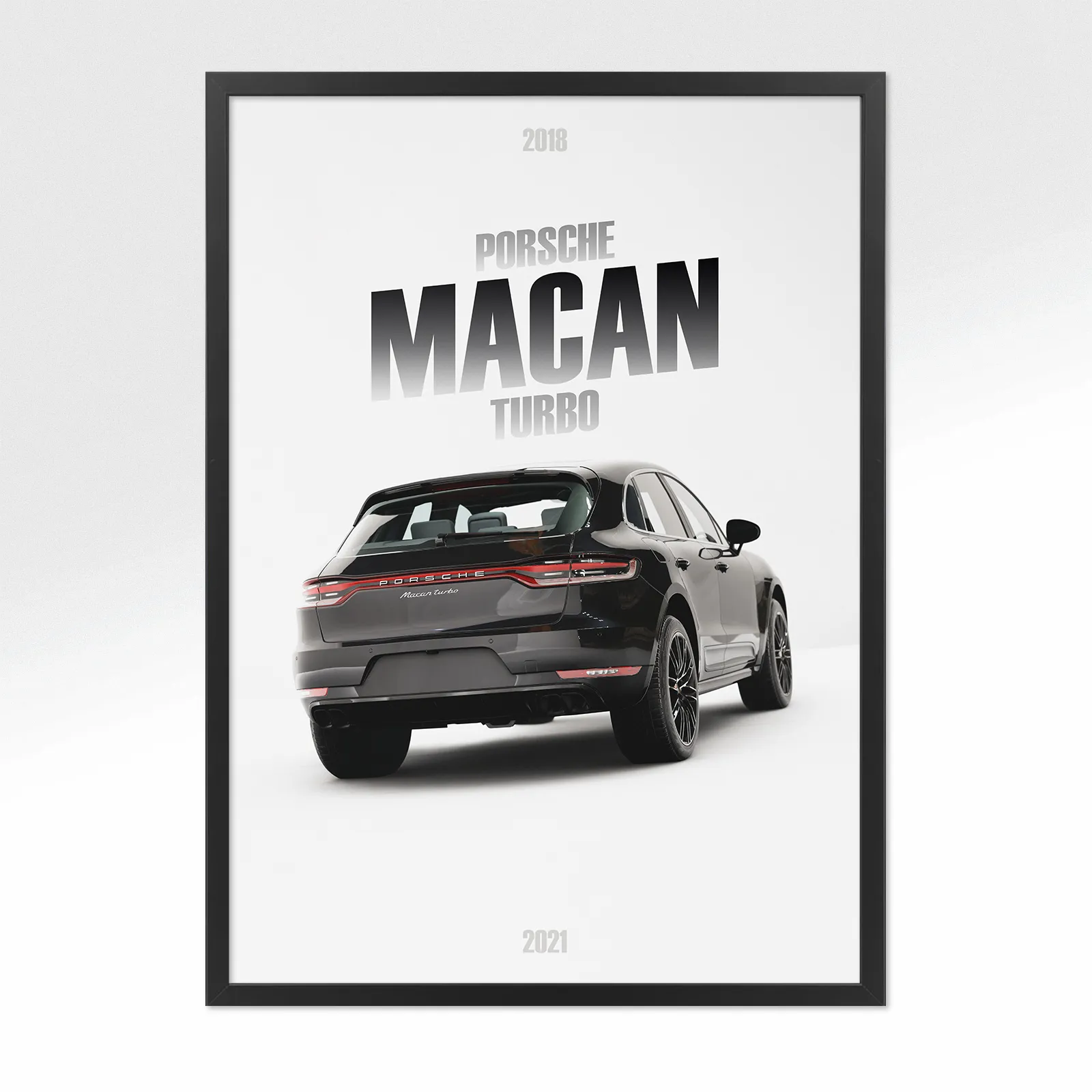 Un poster unique représentant l’avant de la Porsche Cayenne Turbo commercialisée de 2018 à 2023.